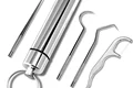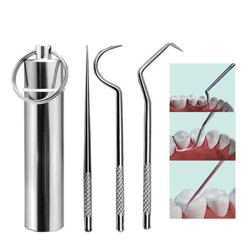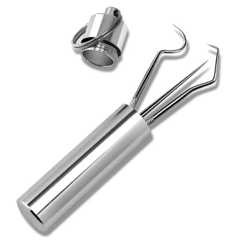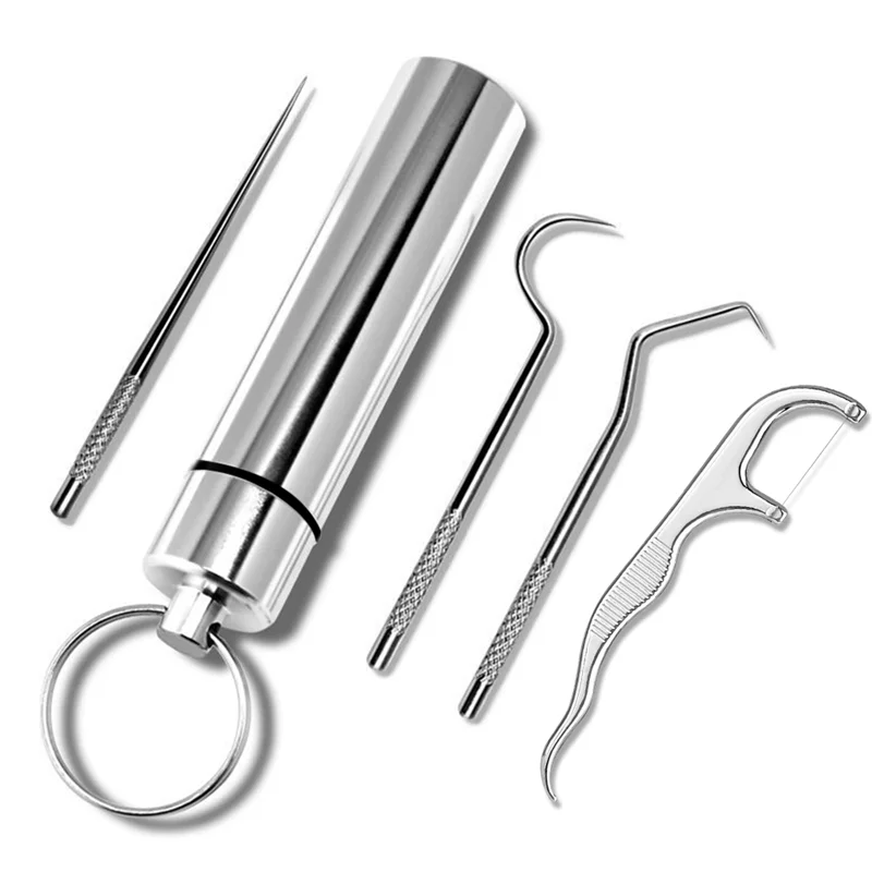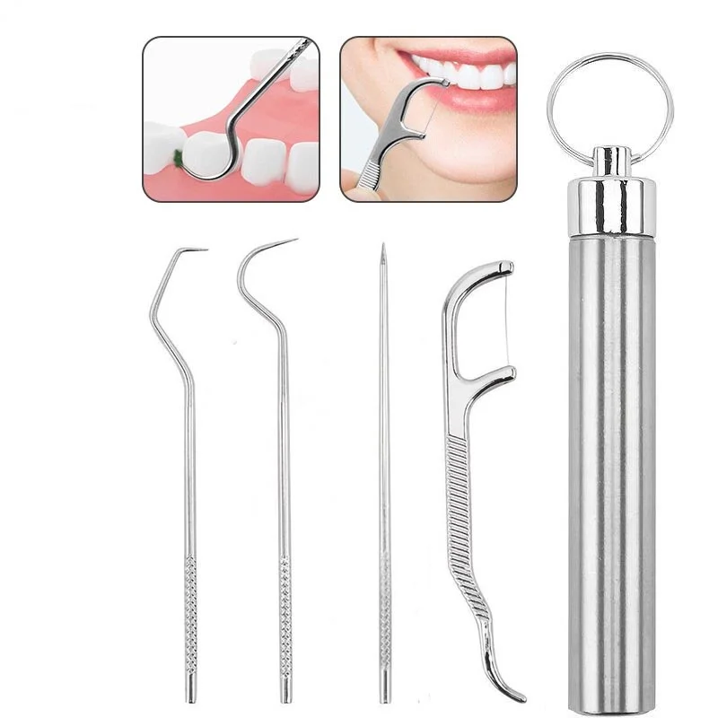 خلال دندان استیل 5 قطعه هیچ کدام از مشکلات انواع دیگر خلال دندان را ندارد با این 4 قطعه که شامل خلال دندان و ابزار خلال زاویه دار در دو مدل و نخ دندان و یک جعبه می باشد می توانید به تمام نقاط و دورترین دندان ها دسترسی داشته باشید و باقیمانده غذا را به بهترین شکل بیرون کشیده و نگذارید این باقیمانده غذا به دندانتان آسیب برساند.